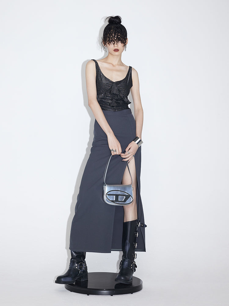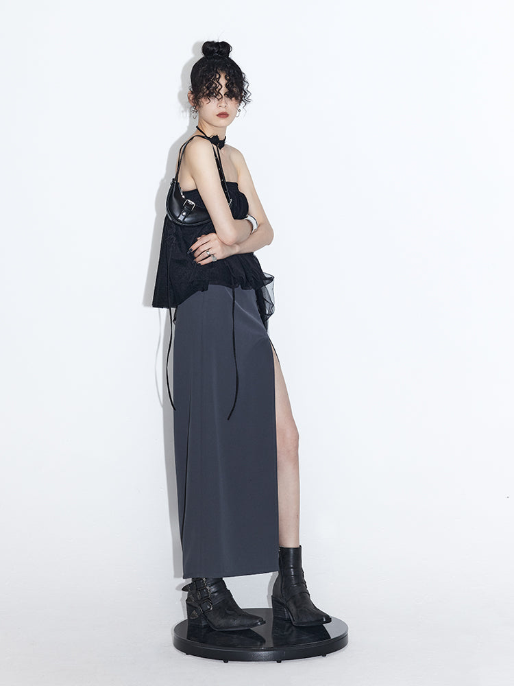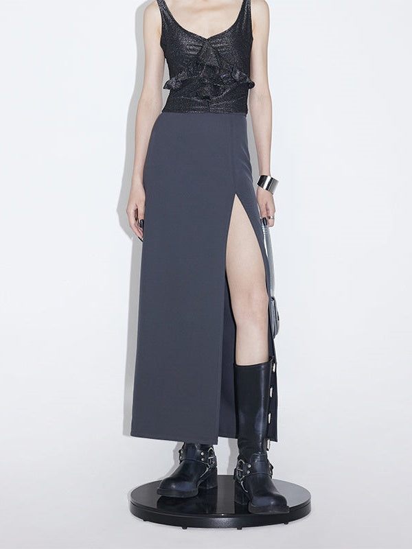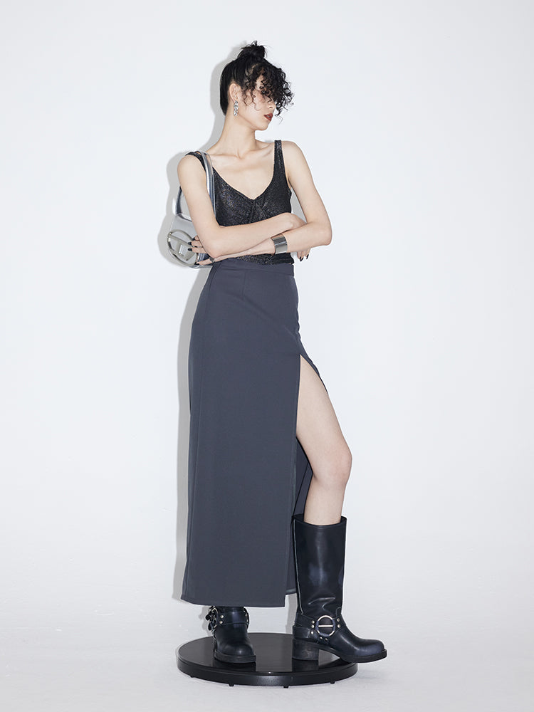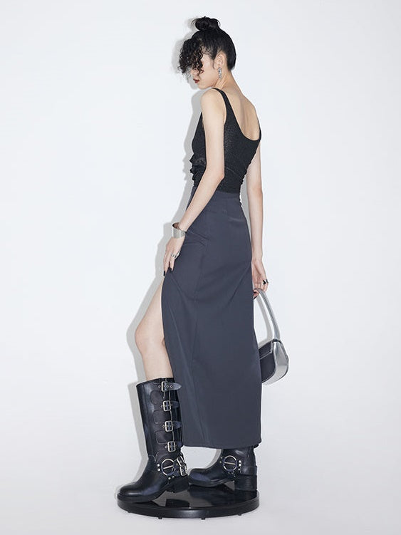 Slit Mid-length High Waist Straight Skirt