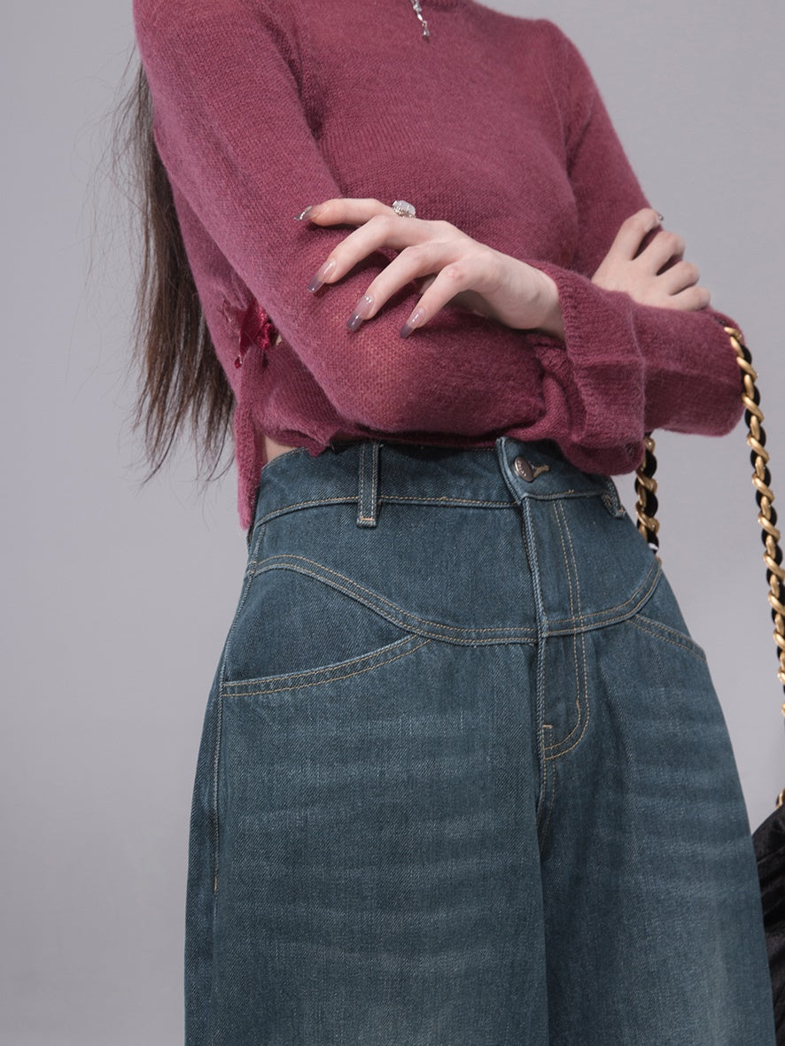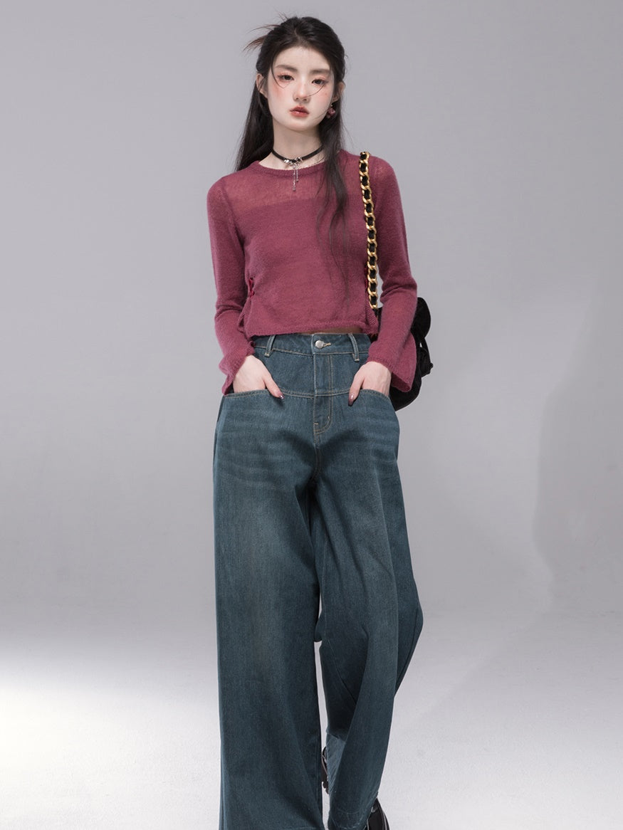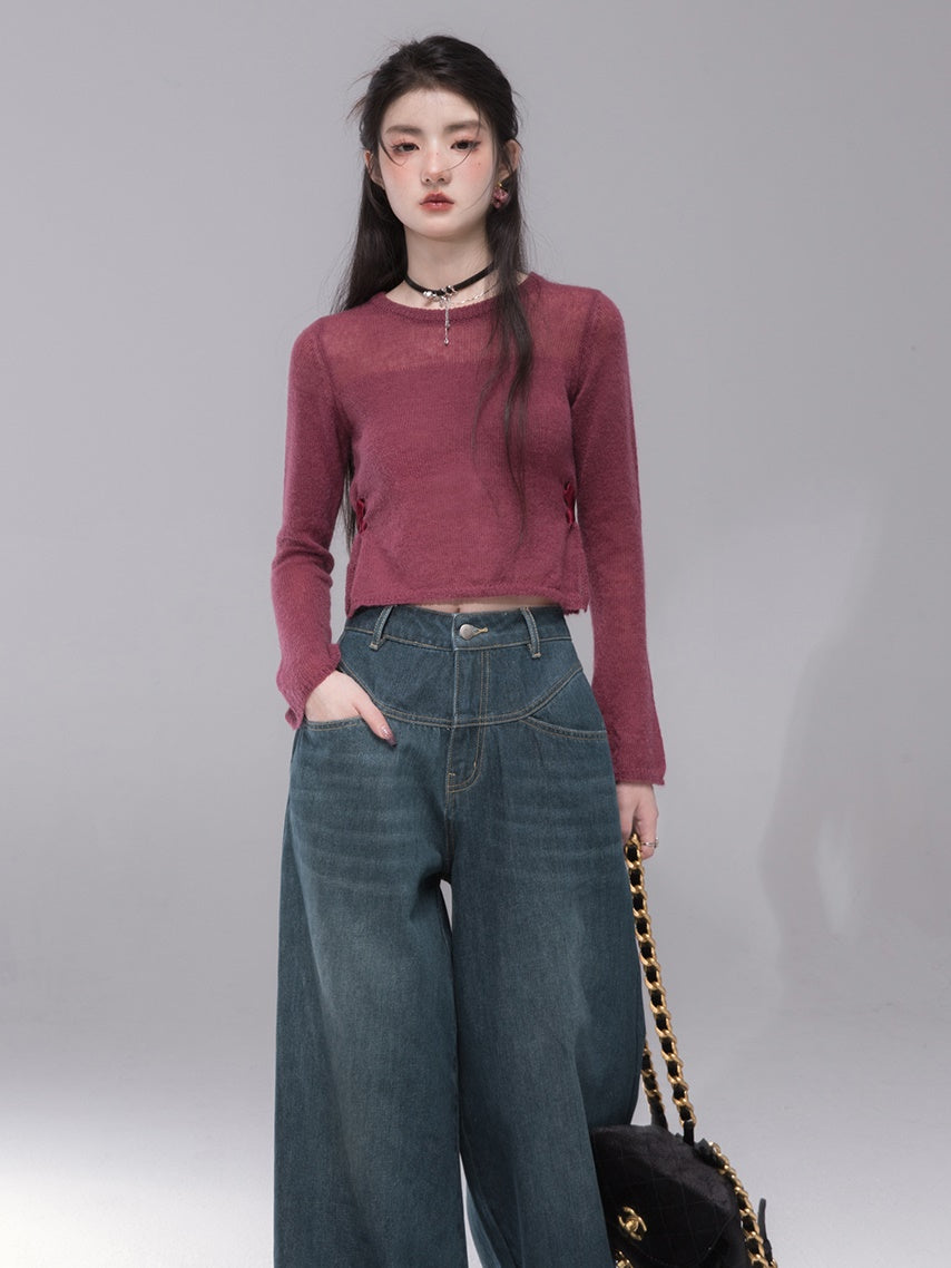 Slit Ribbon Cropped Knit Top