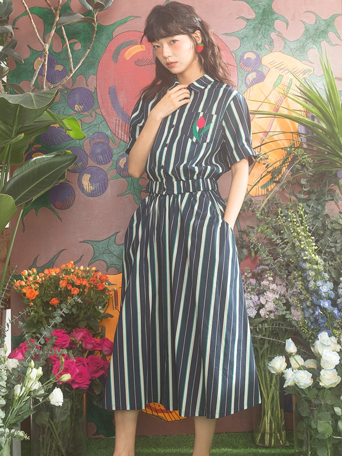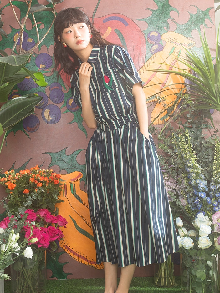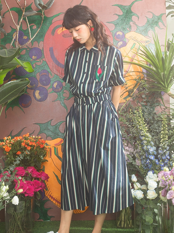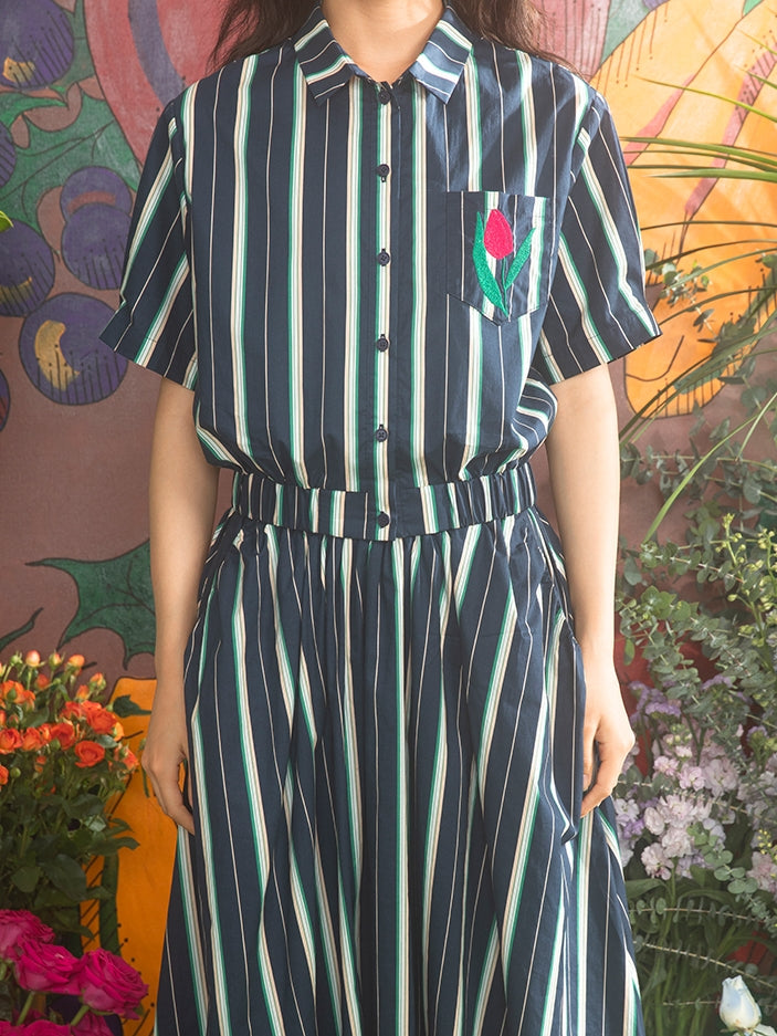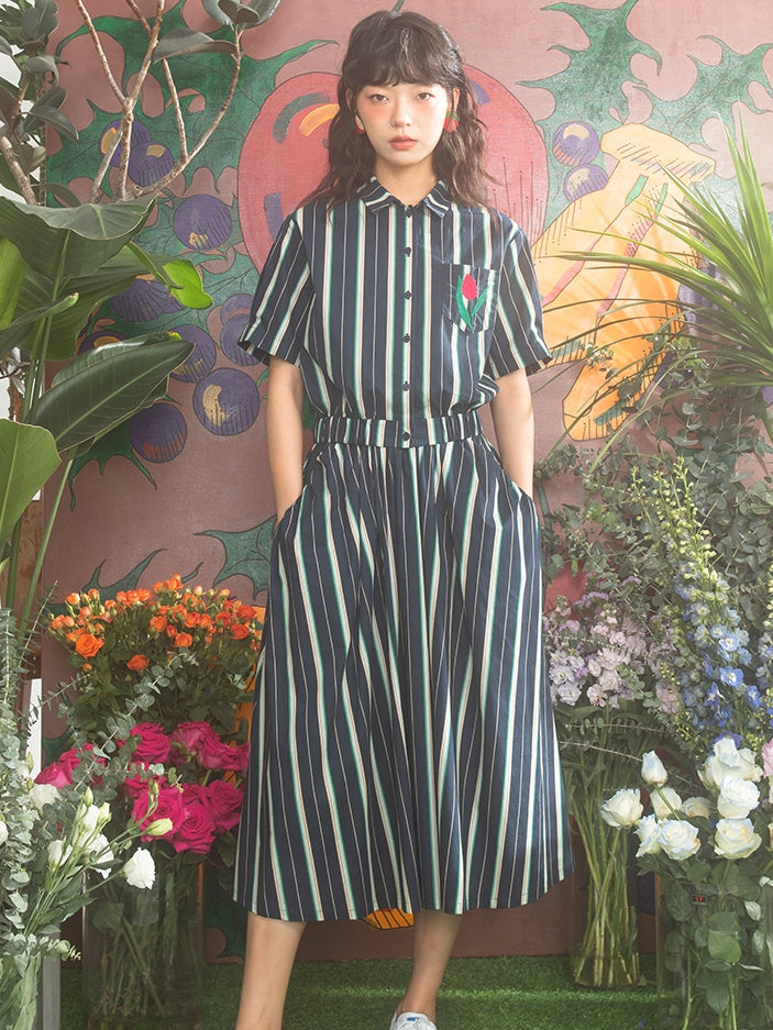 Stripe Casual Smmer Tulip Shirt&Long-Skirt