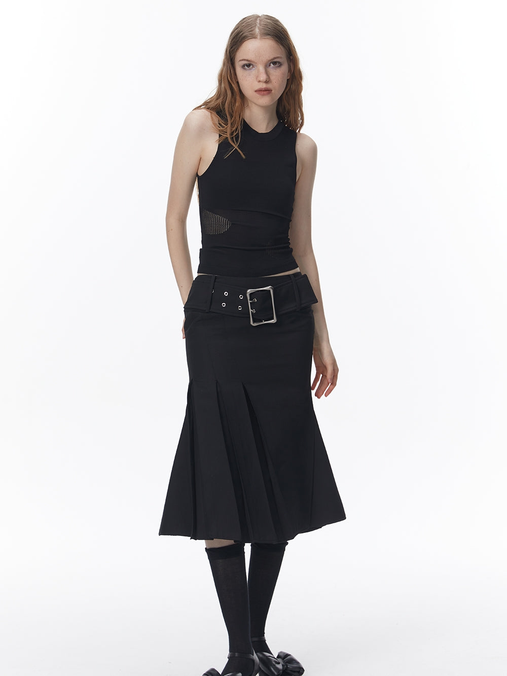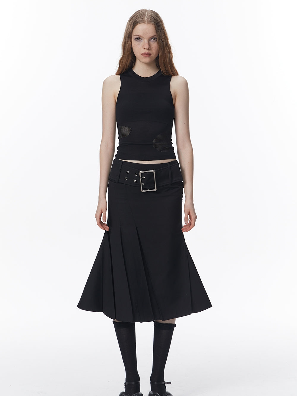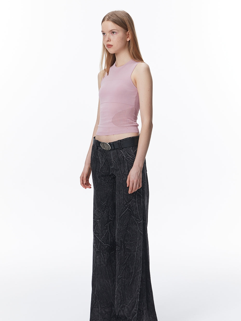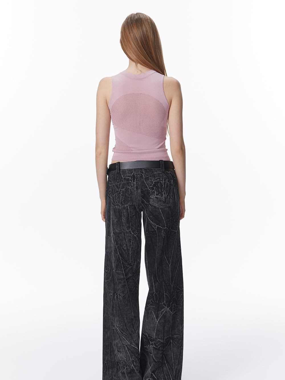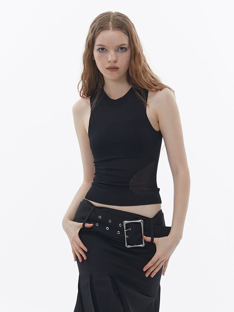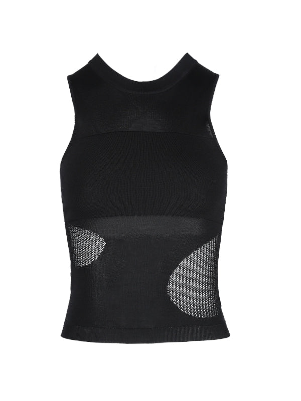 Summer-Knit Mesh Tight Cropped Tank-Top
