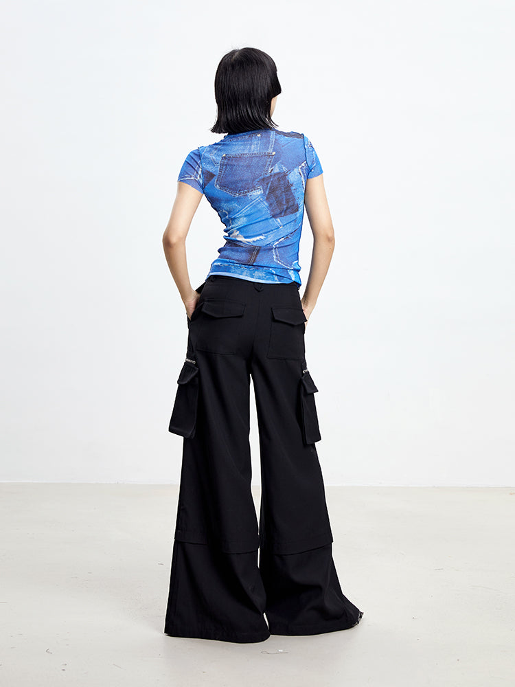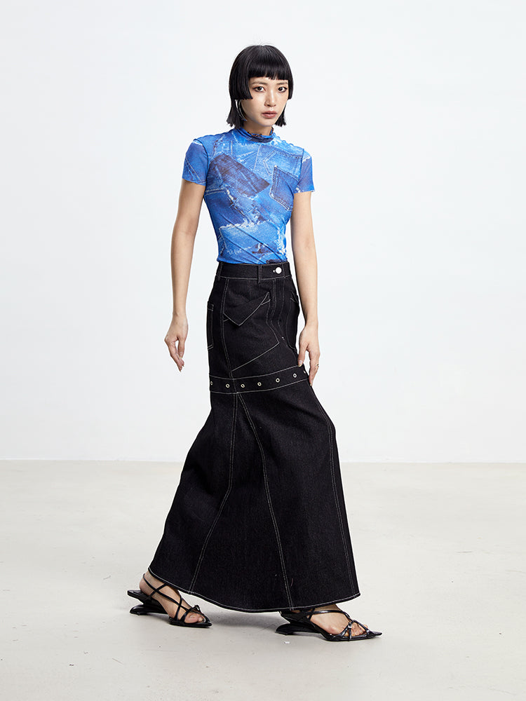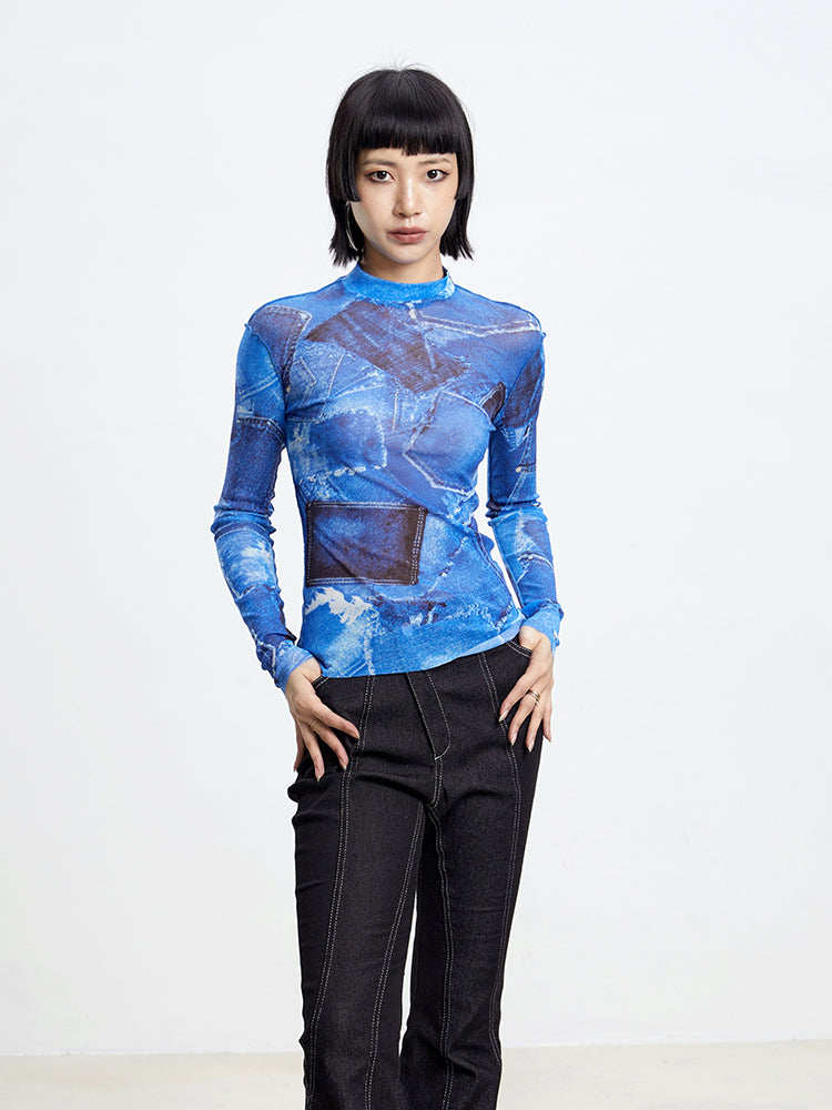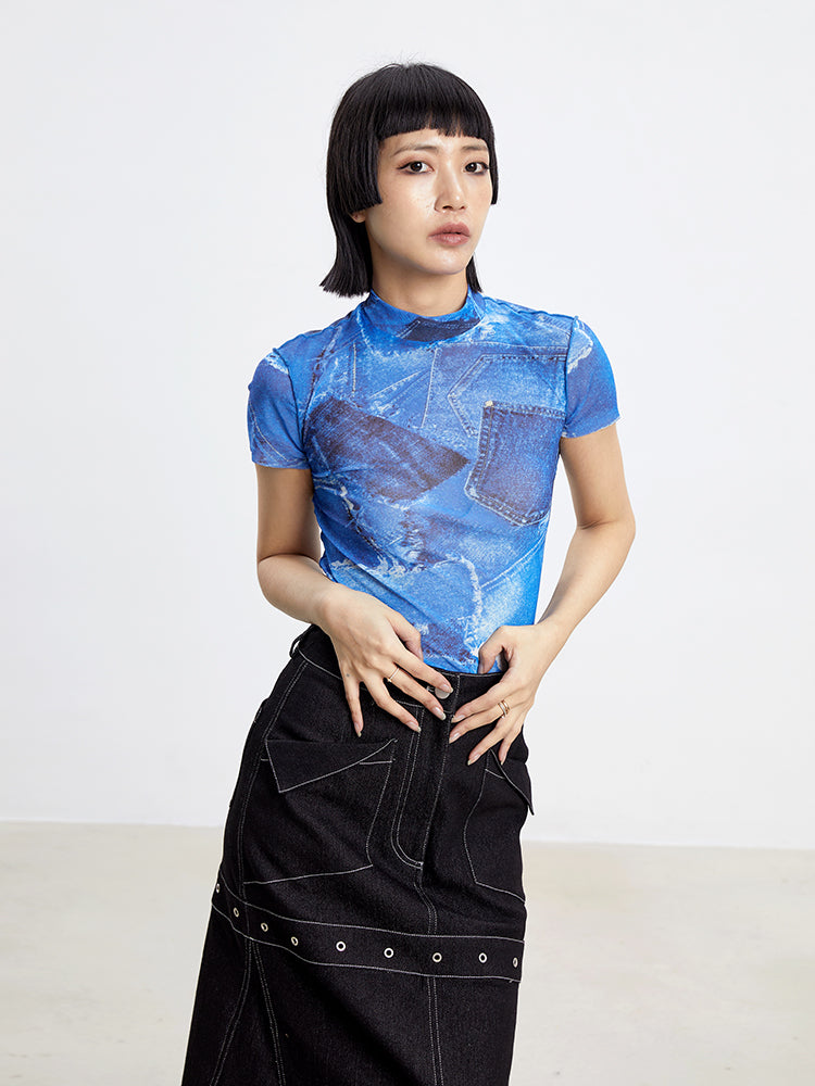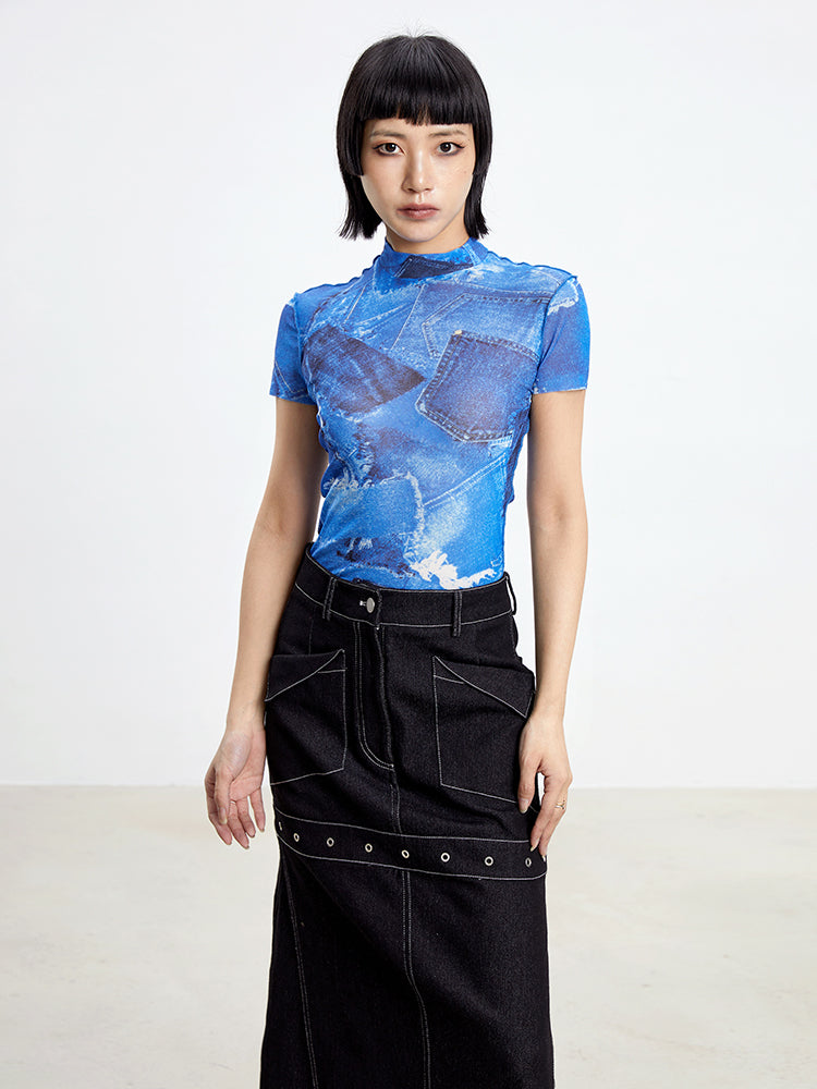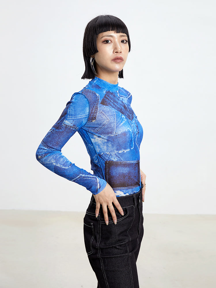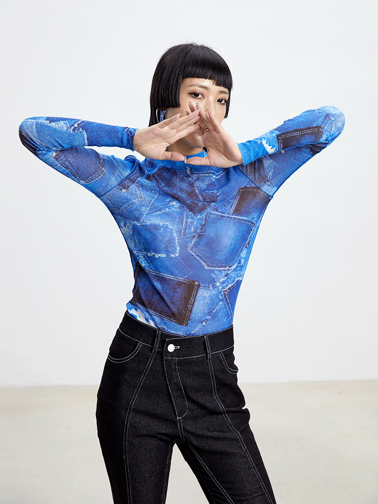 Tight Modern Cool Fake-Denim Thin Cutsew