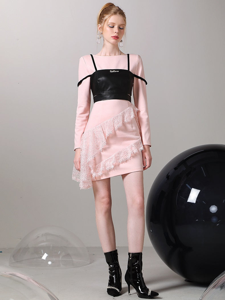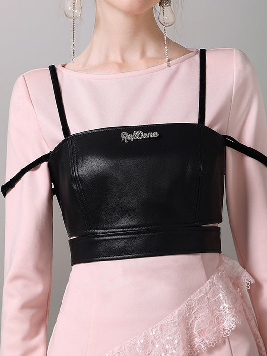 Vest&One-Piece Leather Asymmetry Lace Feminine Set-Up